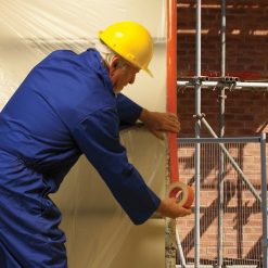 Multitude of uses including waterproofing and windproofing scaffolding, windows, doors and exposed roofing.